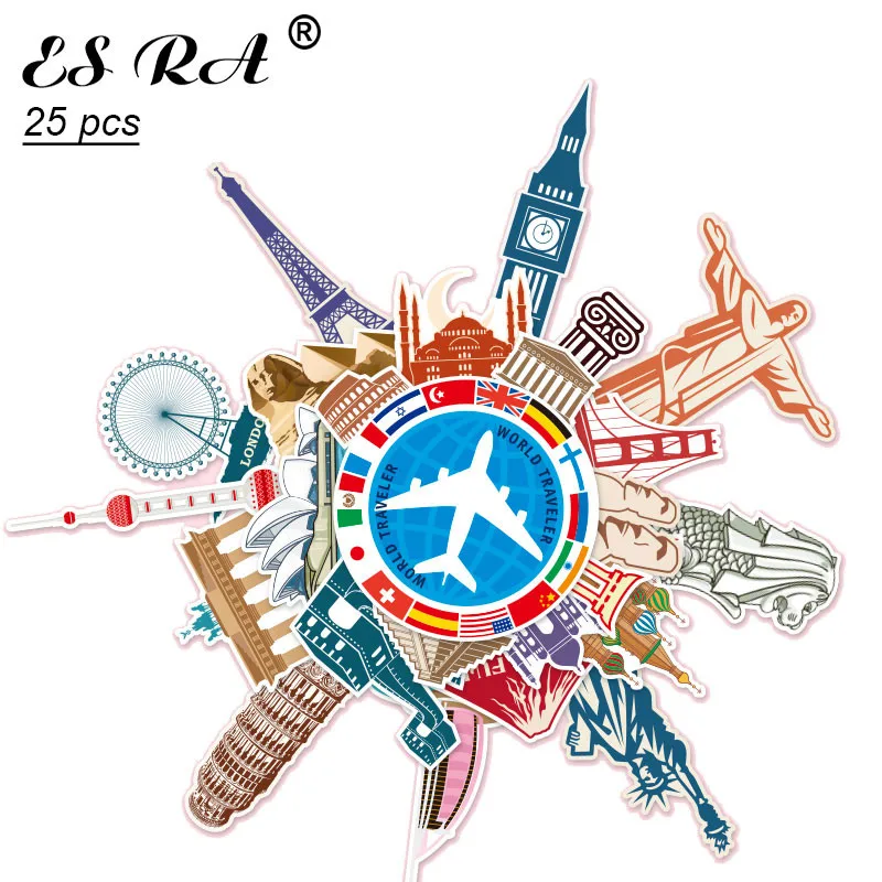 Name: 25 unids/set pegatinas de equipaje de los países Citires maleta pegatinas juguetes de PVC a prueba de agua etiqueta de tabla de Skate de nevera decorar